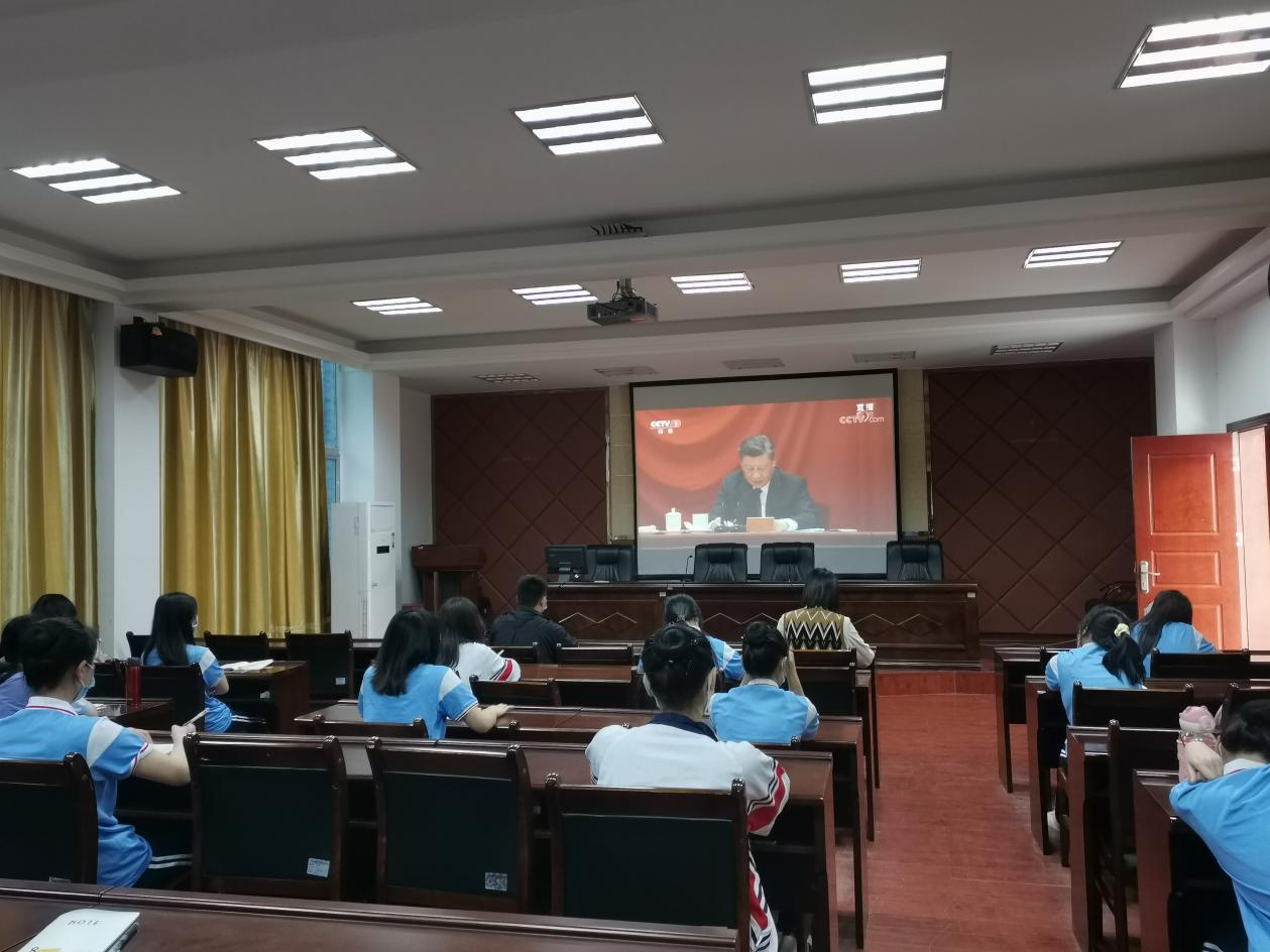 来自各团支部的团员代表与团委教师代表在收看直播过程中,认真做笔记,并结合积极思考,于大会直播结束后即时展开就习近平总书记大会上所发表重要讲话的学习讨论,交流学习感言。