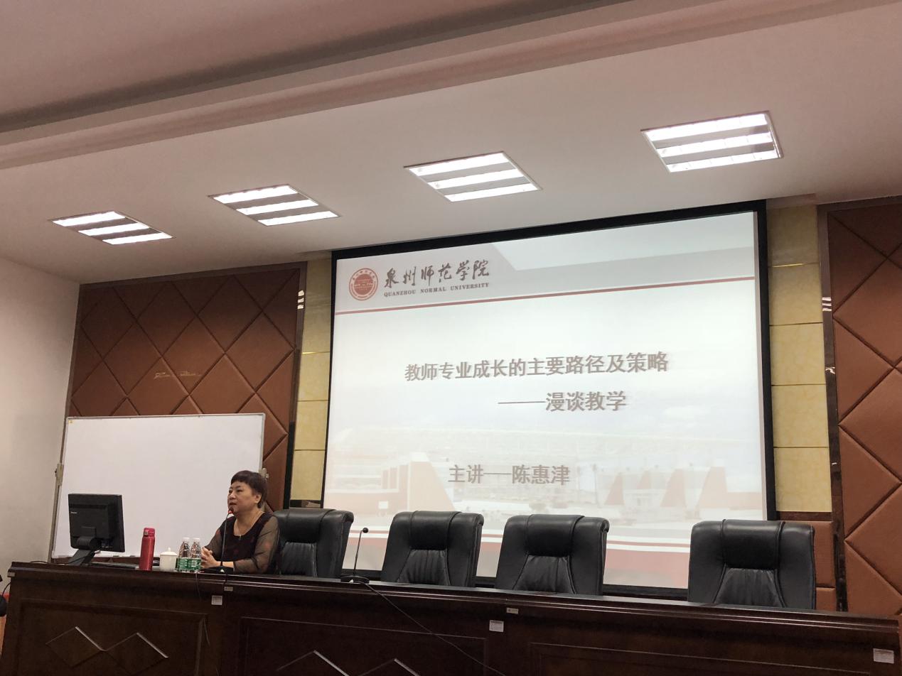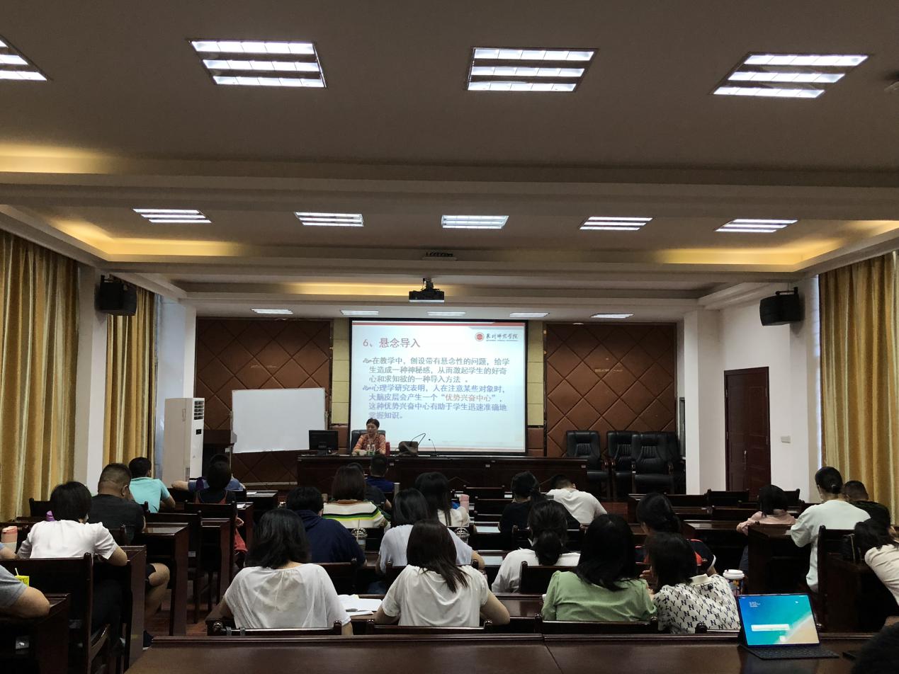本次培训特别邀请了泉州师范学院教育学院陈惠津副教授开展了以“教师专业成长的主要路径及策略——漫谈教学”为主题的专题讲座。上午讲座的主要内容是如何备课和写教案,下午讲座的主要内容是如何上课和评课。讲座中既有丰富系统的教育学、心理学专业理论阐述,又有生动具体的案例说明,通俗易懂,趣味横生,启发性较强。培训过程中,我校教师全程专心听讲,认真做笔记,受益匪浅。