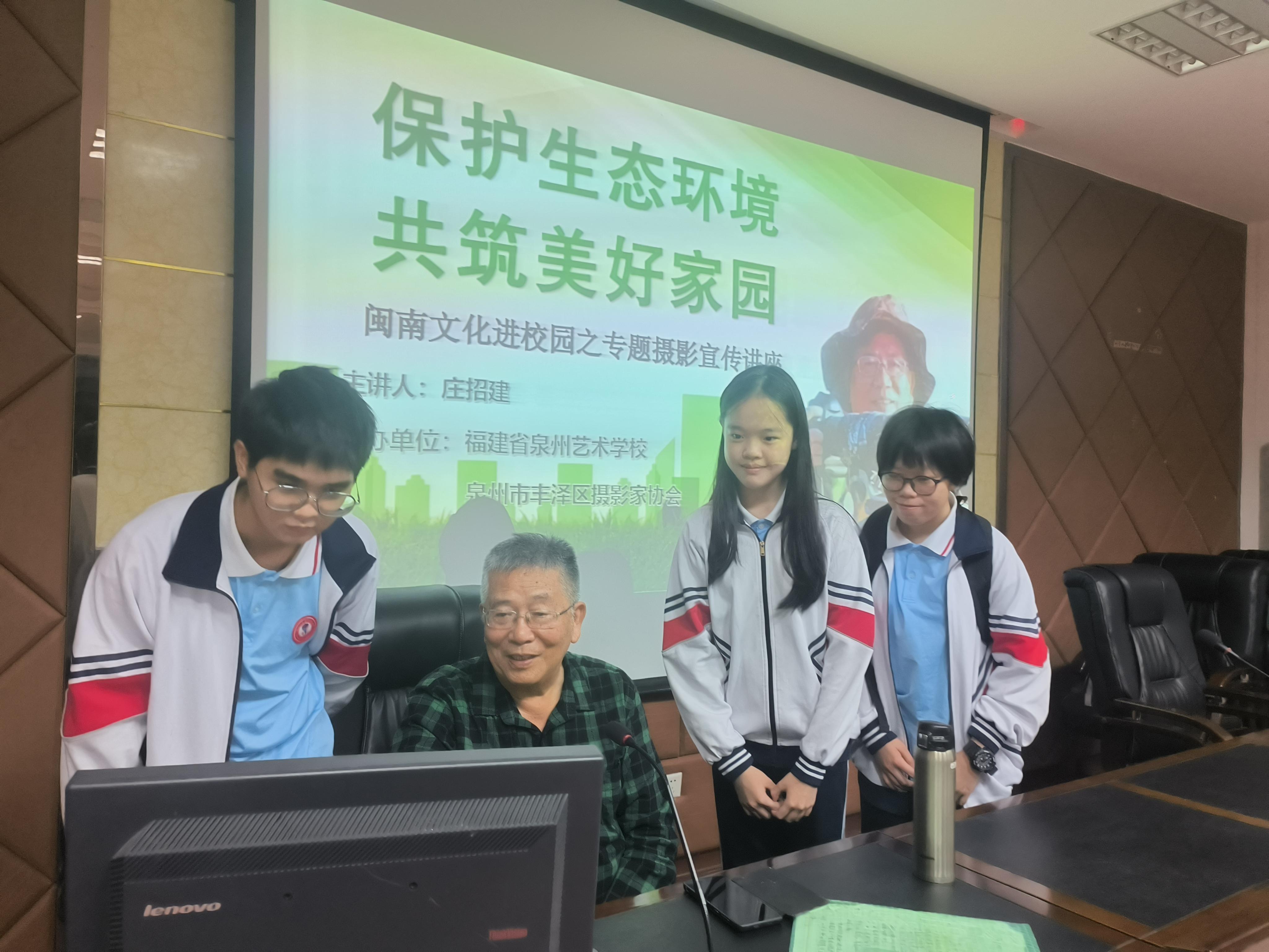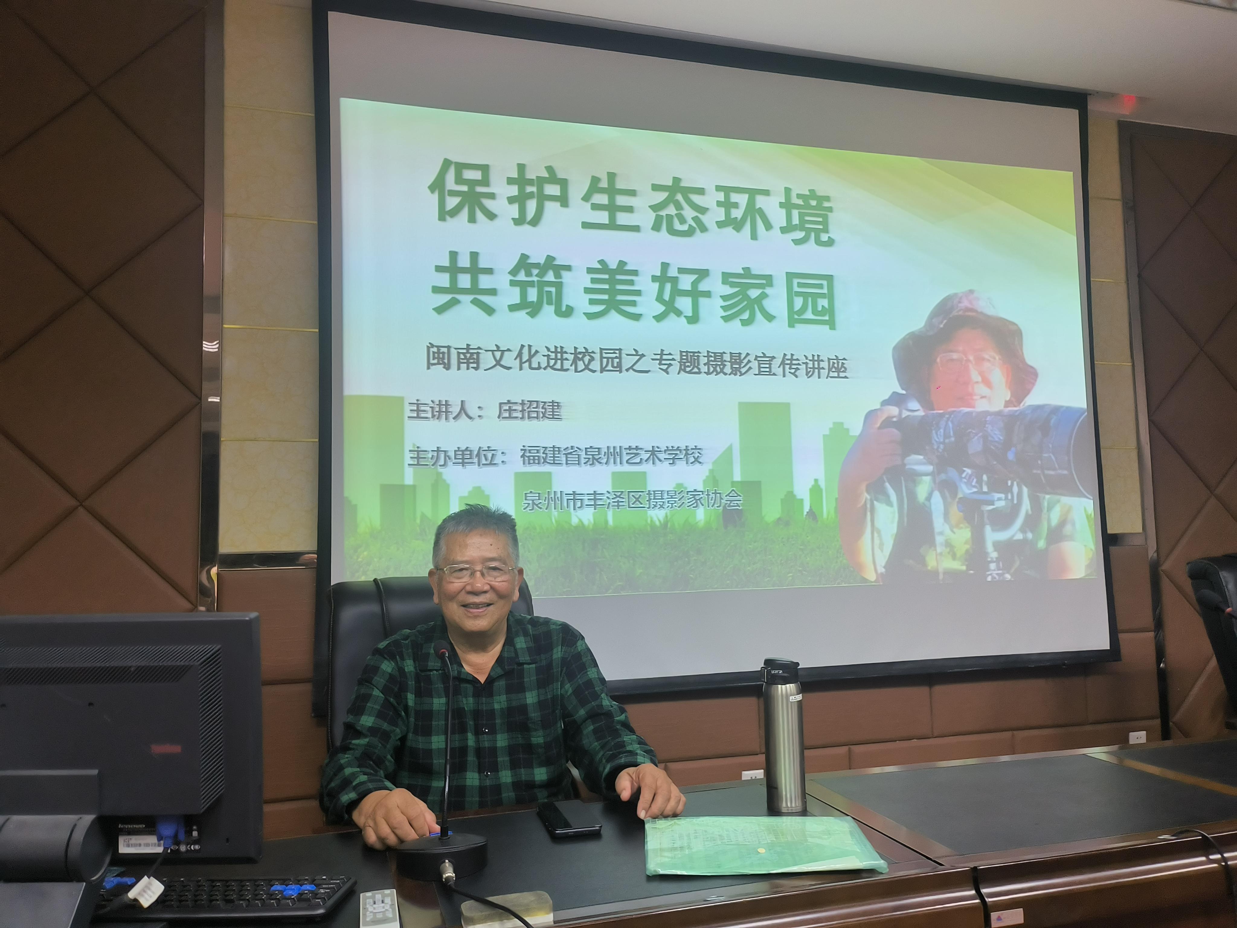 为进一步帮助学生开拓视野,推进摄影艺术的交流与学习,激发学生亲近自然、保护环境、了解野生动物的生态意识,10月30日下午,我校与泉州市丰泽区摄影家协会联合主办的“闽南文化进校园”之专题摄影宣传讲座,在教学楼多媒体教室举行。本次讲座特邀中国鸟网钻石会员、泉州市摄影家协会会员、我省资深动物拍摄专家庄招建老师,为我校学生带来一场精彩的专题摄影盛宴。