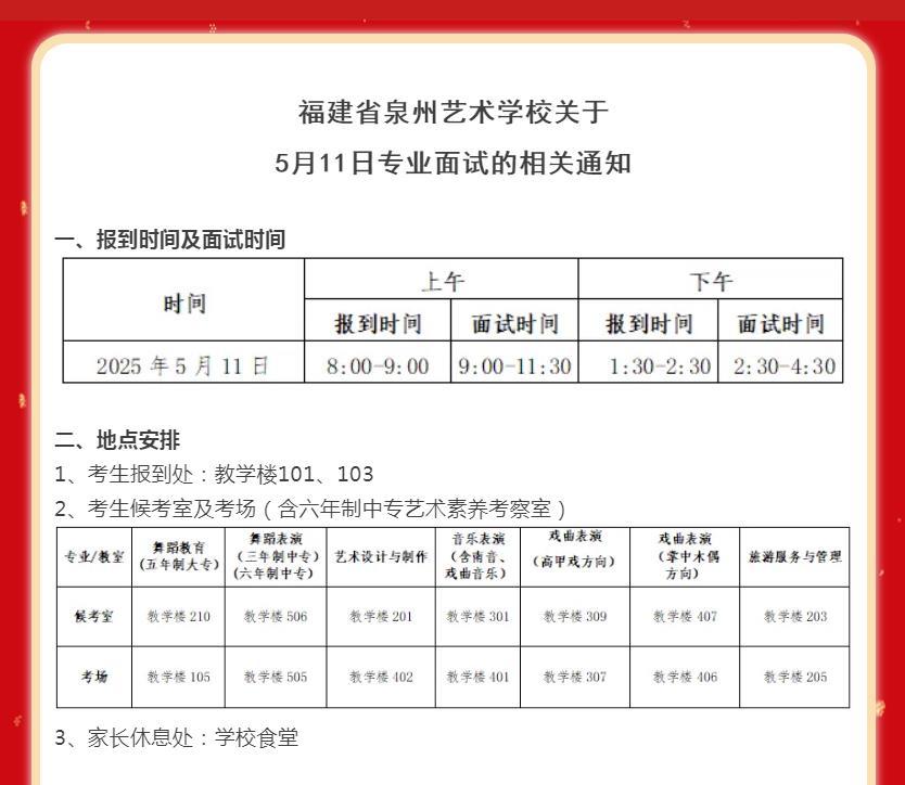 福建省泉州艺术学校关于5月11日专业面试的相关通知