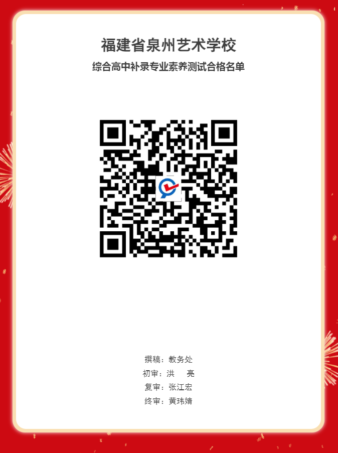 福建省泉州艺术学校综合高中补录专业素养测试合格名单