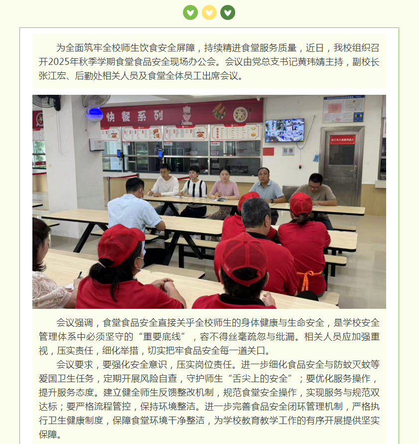 筑牢食安防线 守护舌尖安全——泉州艺术学校召开食品安全现场办公会