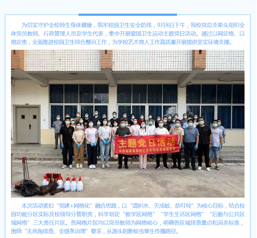 党建引领聚合力 网格攻坚护健康——泉州艺术学校开展爱国卫生运动主题党日活动