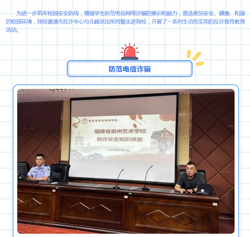 守护校园安全 共筑反诈防线——泉州艺术学校开展防骗反诈宣传教育活动