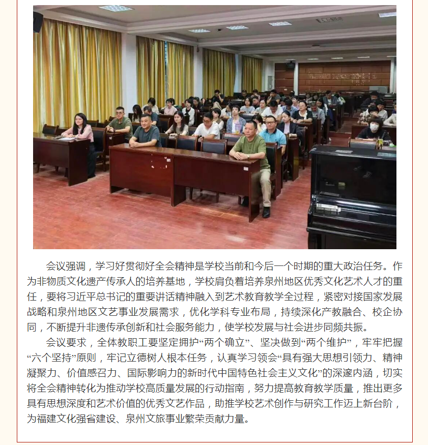 泉州艺术学校召开学习贯彻党的二十届四中全会精神专题会议