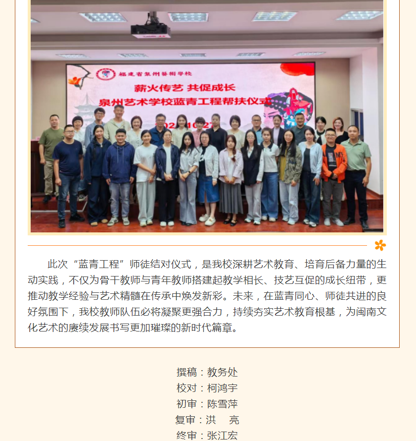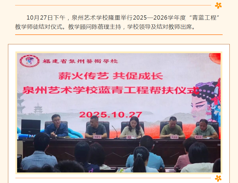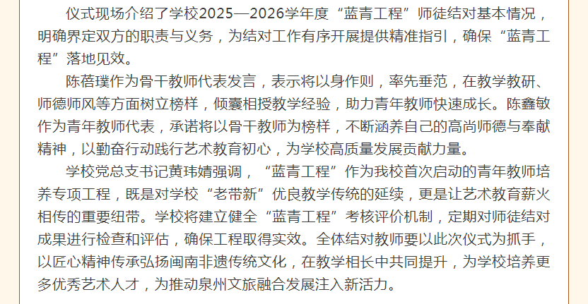 蓝青结对传薪火·匠心赓续谱新篇——泉州艺术学校举行“蓝青工程”师徒结对仪式