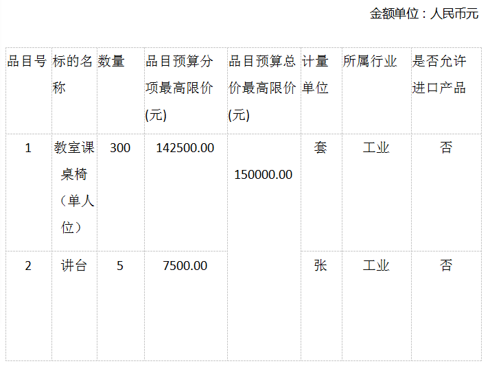 项目名称:福建省泉州艺术学校教室课桌椅、讲台采购项目