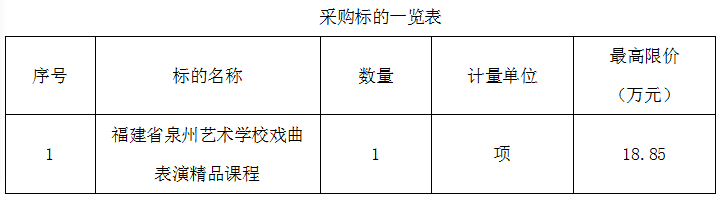 福建省泉州艺术学校戏曲表演精品课程采购公告