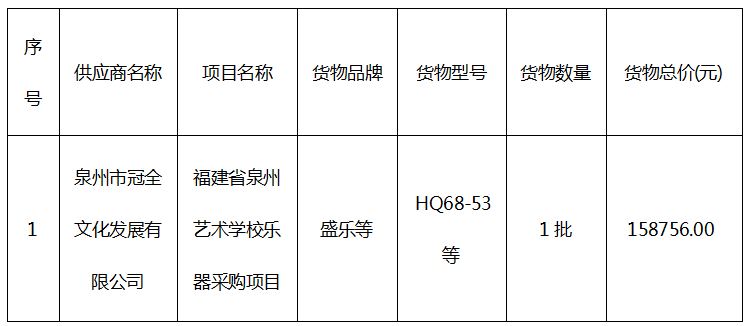二、项目名称:福建省泉州艺术学校乐器采购项目