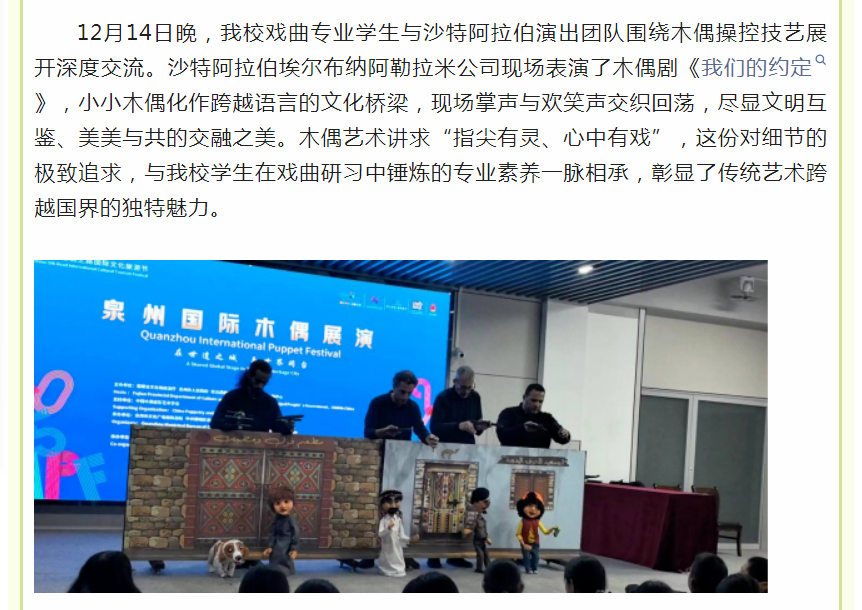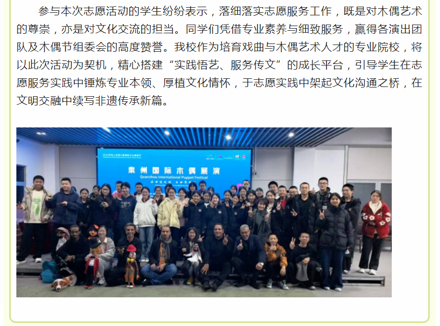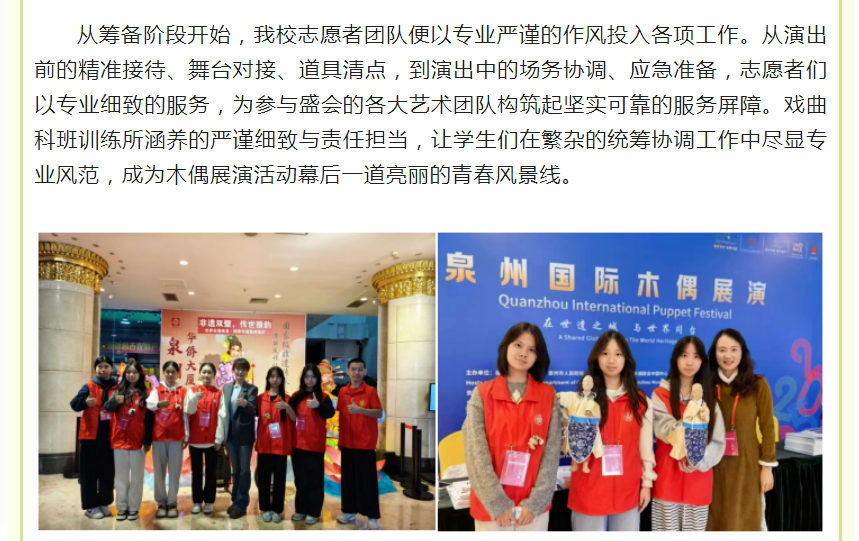 木偶传情承文脉 青春筑桥耀刺桐——泉州艺术学校学生参与泉州国际木偶展演