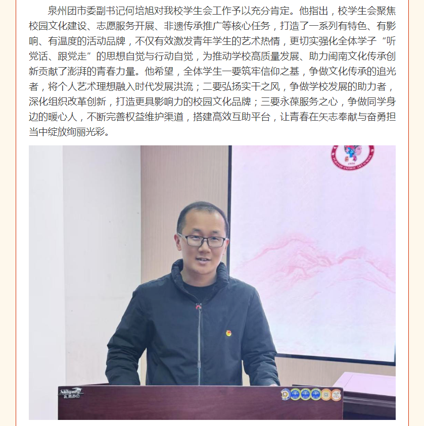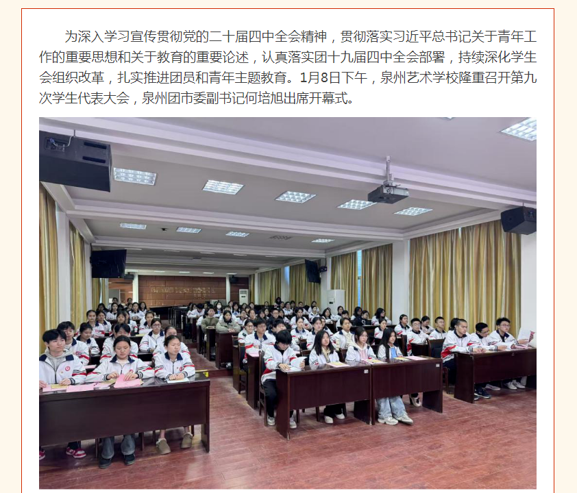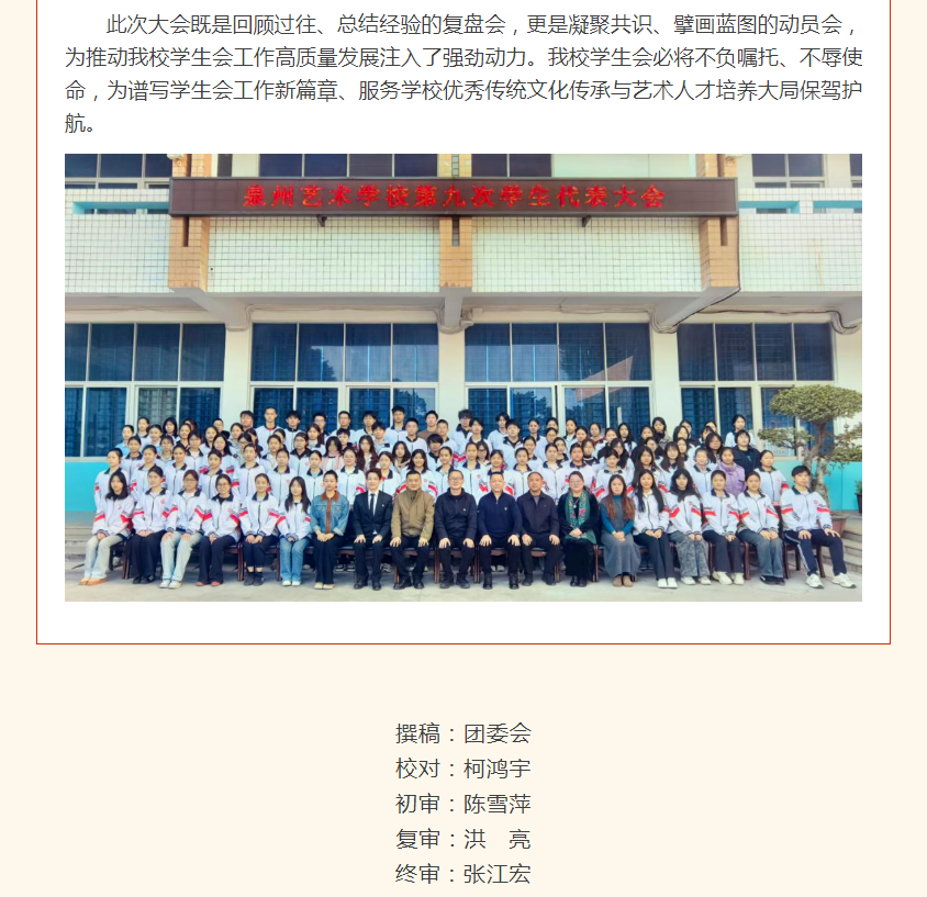 薪火前行守初心 青春奋进建新功——泉州艺术学校隆重召开第九次学生代表大会