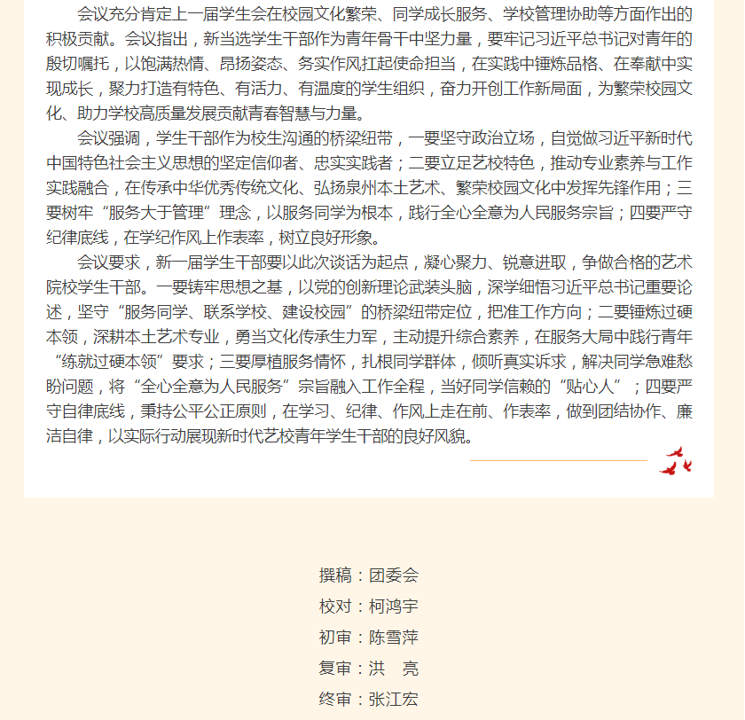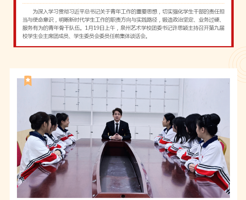 凝心铸魂担使命 青春领航启新程——泉州艺术学校召开第九届校学生会干部任前集体谈话会