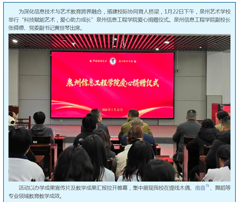 科技赋能艺术 爱心助力成长——泉州信息工程学院爱心捐赠助力艺校发展