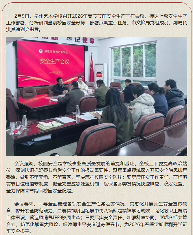 泉州艺术学校召开2026年春节节前安全生产工作会议