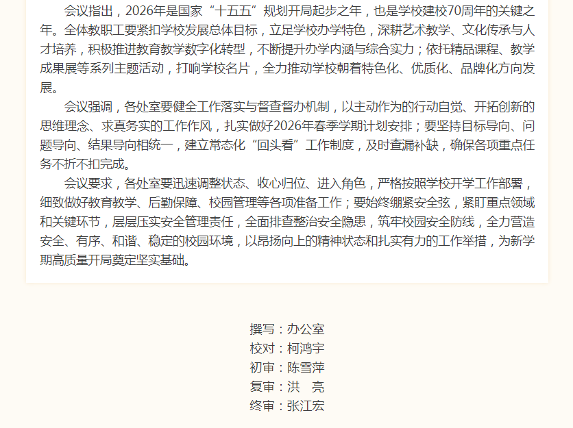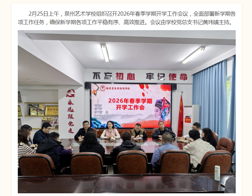 策马扬鞭谋发展 笃行实干谋新篇—— 泉州艺术学校召开2026年春季学期开学工作会议