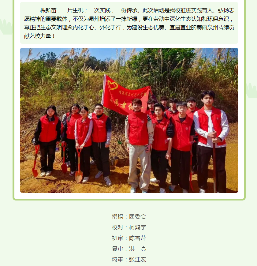 艺心植绿 志愿同行——泉州艺术学校师生举行公益植树活动